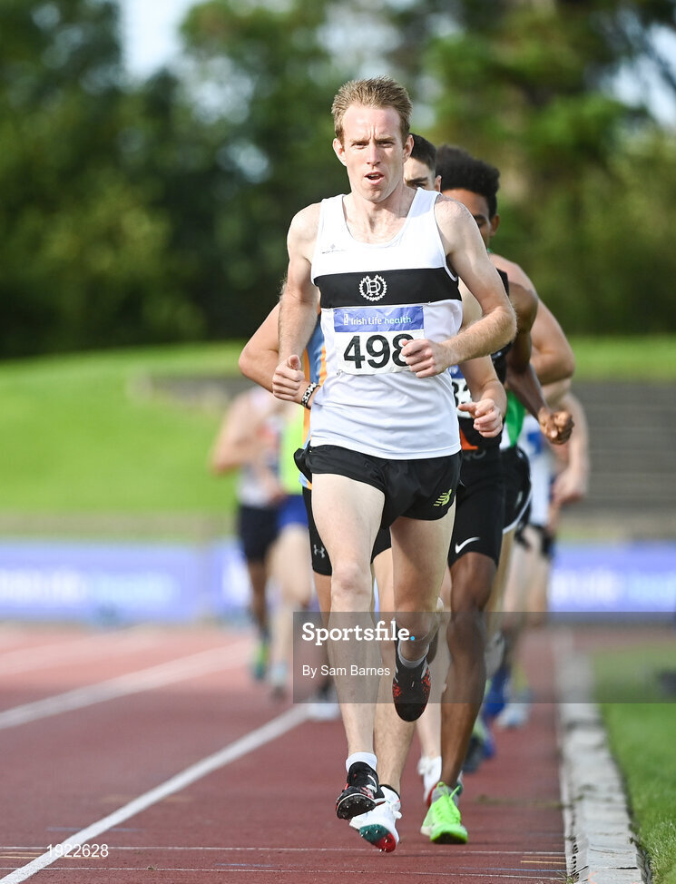 23 August 2020; John Travers of Donore Harriers, Dublin, leads the field whilst competing in the Men's 5000m during Day Two of the Irish Life Health National Senior and U23 Athletics Championships at Morton Stadium in Santry, Dublin. Photo by Sam Barnes/Sportsfile