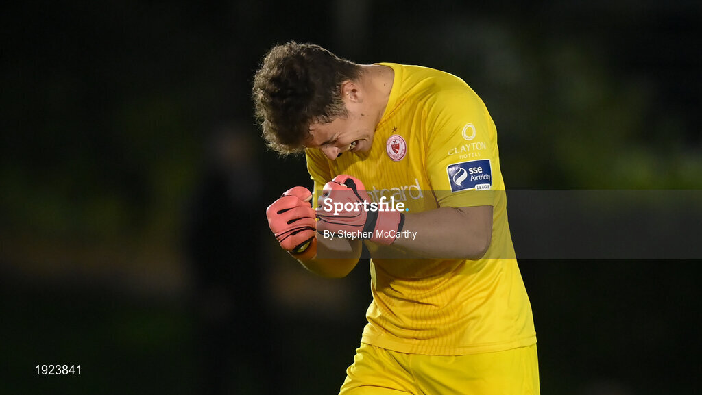 30 August 2020; Sligo Rovers goalkeeper Ed McGinty celebrates his side's third goal during the Extra.ie FAI Cup Second Round match between UCD and Sligo Rovers at UCD Bowl in Belfield, Dublin. Photo by Stephen McCarthy/Sportsfile