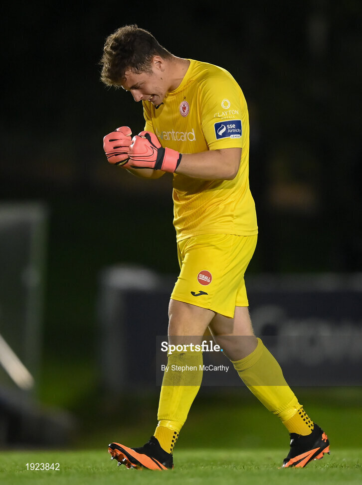 30 August 2020; Sligo Rovers goalkeeper Ed McGinty celebrates his side's third goal during the Extra.ie FAI Cup Second Round match between UCD and Sligo Rovers at UCD Bowl in Belfield, Dublin. Photo by Stephen McCarthy/Sportsfile