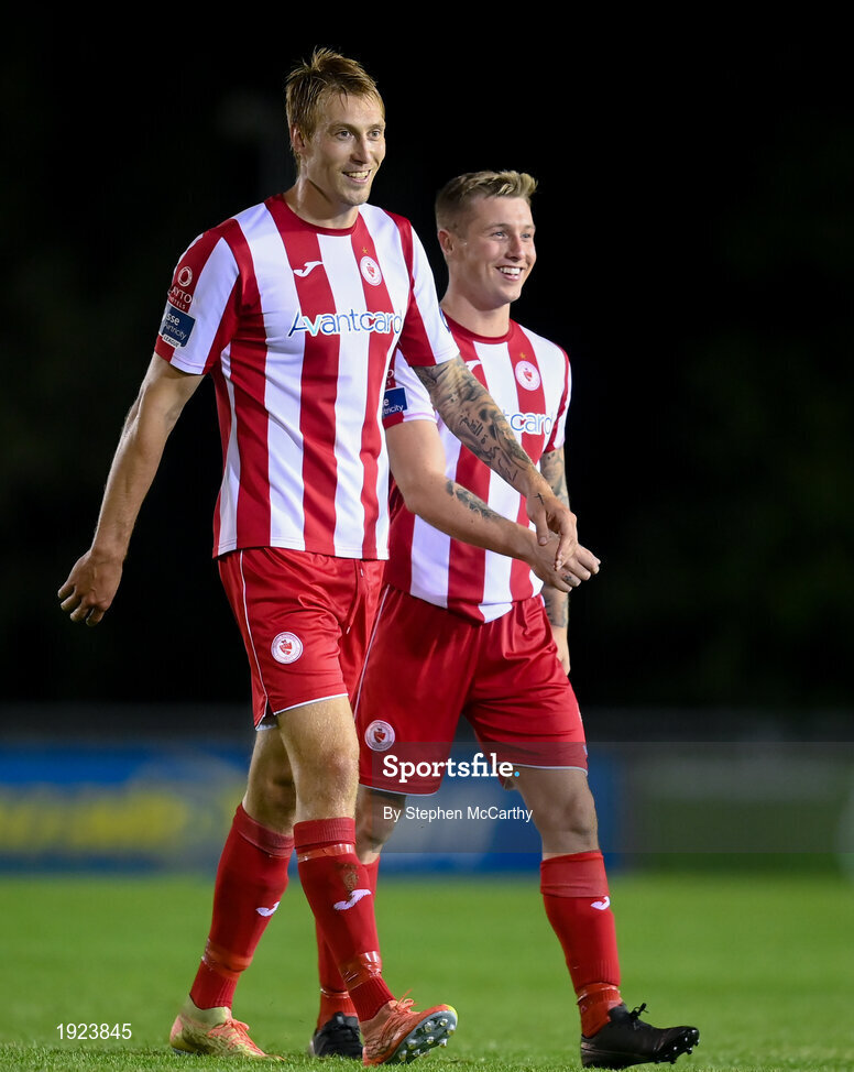 30 August 2020; Teemu Penninkangas, left, and Jesse Devers of Sligo Rovers following the Extra.ie FAI Cup Second Round match between UCD and Sligo Rovers at UCD Bowl in Belfield, Dublin. Photo by Stephen McCarthy/Sportsfile