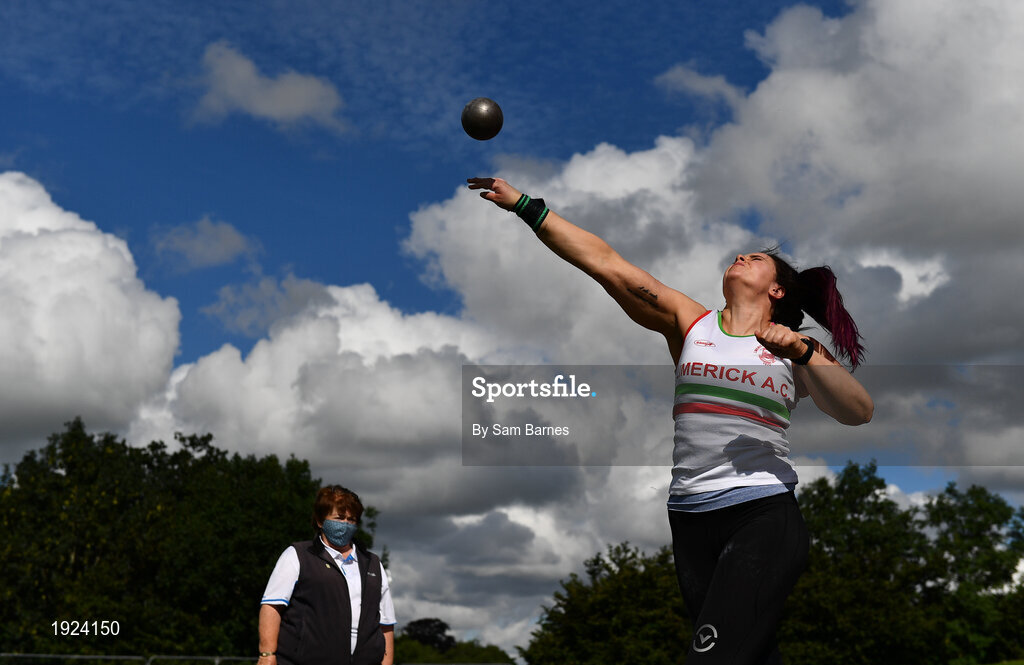 30 August 2020; Alana Frattaroli of Limerick AC, competing in the Women's Shot Put event during day four of the Irish Life Health National Senior and U23 Athletics Championships at Morton Stadium in Santry, Dublin. Photo by Sam Barnes/Sportsfile