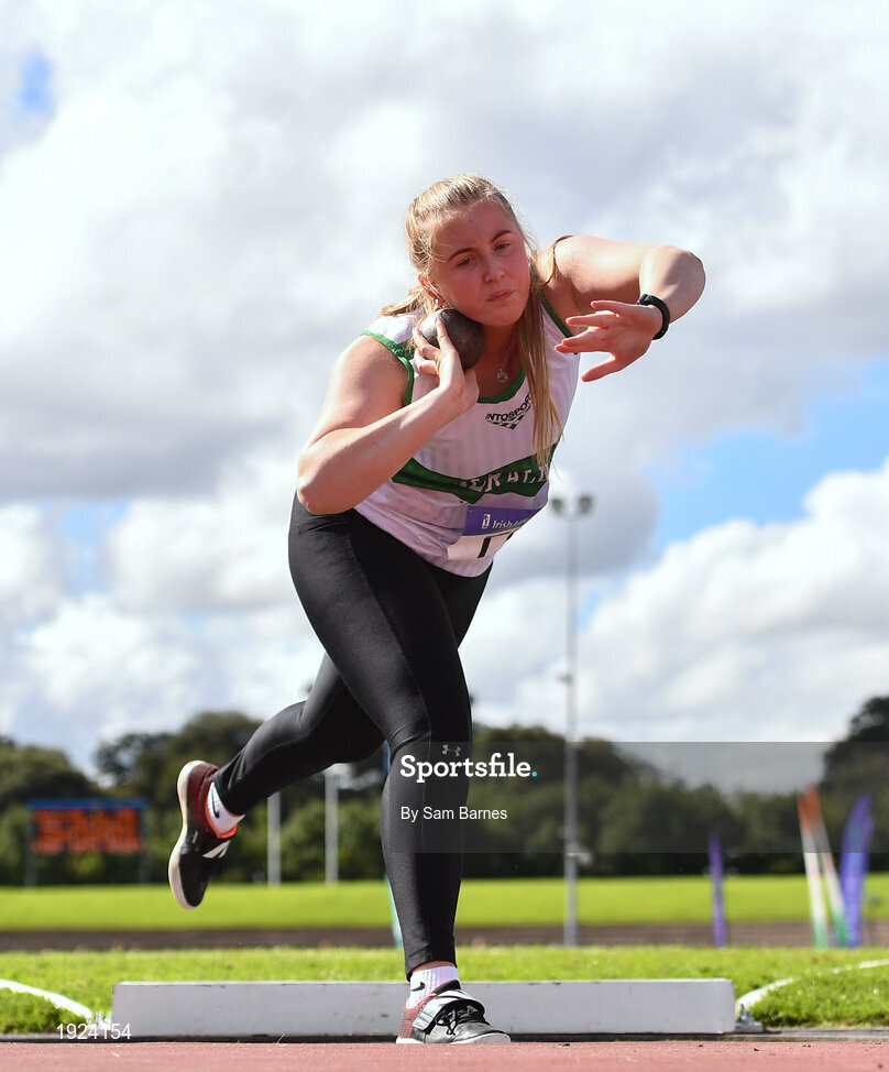 30 August 2020; Ciara Sheehy of Emerald AC, Limerick, competing in the Women's Shot Put event during day four of the Irish Life Health National Senior and U23 Athletics Championships at Morton Stadium in Santry, Dublin. Photo by Sam Barnes/Sportsfile