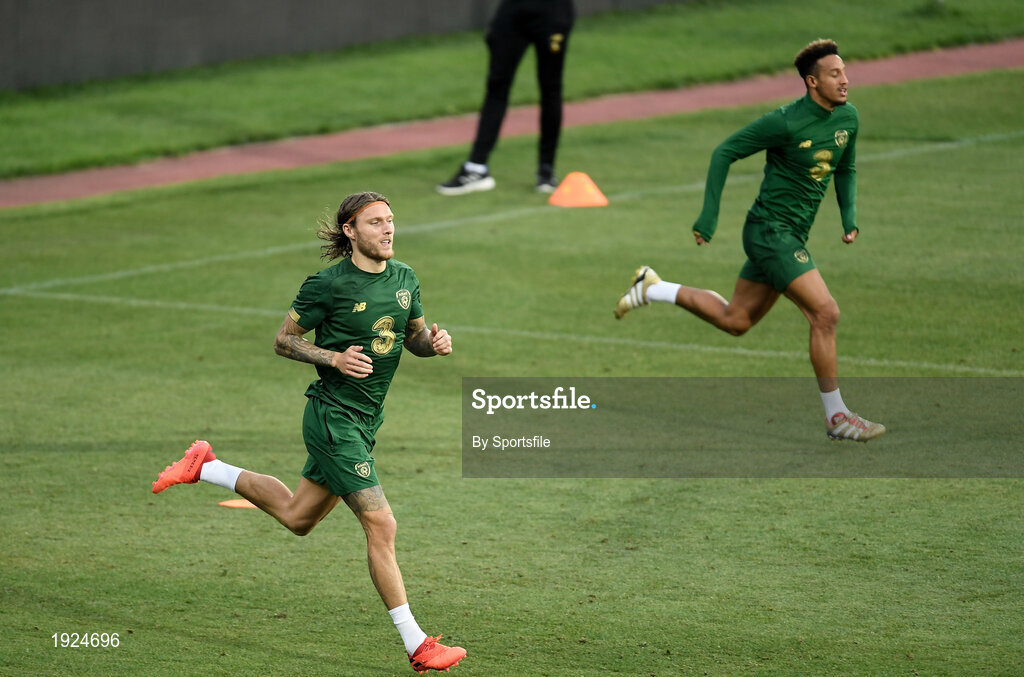 2 September 2020; Jeff Hendrick, left, and Callum Robinson during a Republic of Ireland training session at Vasil Levski National Stadium in Sofia, Bulgaria. Photo by Alex Nicodim/Sportsfile