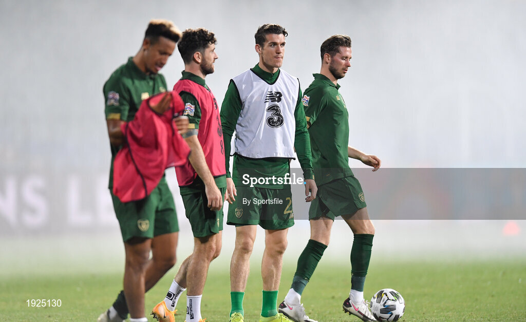 3 September 2020; Callum Robinson, Robbie Brady, Darragh Lenihan and Alan Browne of Republic of Ireland prior to the UEFA Nations League B match between Bulgaria and Republic of Ireland at Vasil Levski National Stadium in Sofia, Bulgaria. Photo by Alex Nicodim/Sportsfile