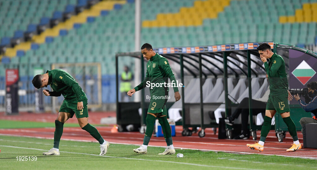 3 September 2020; Republic of Ireland players, from left, John Egan, Adam Idah and Callum O’Dowda ahead of the UEFA Nations League B match between Bulgaria and Republic of Ireland at Vasil Levski National Stadium in Sofia, Bulgaria. Photo by Alex Nicodim/Sportsfile