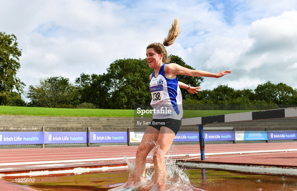 5 September 2020; Cara McNally of Lusk AC, Dublin, on her way to winning the Junior Women's 3000m Steeplechase event during the Irish Life Health National Junior Track and Field Championships at Morton Stadium in Santry, Dublin. Photo by Sam Barnes/Sportsfile