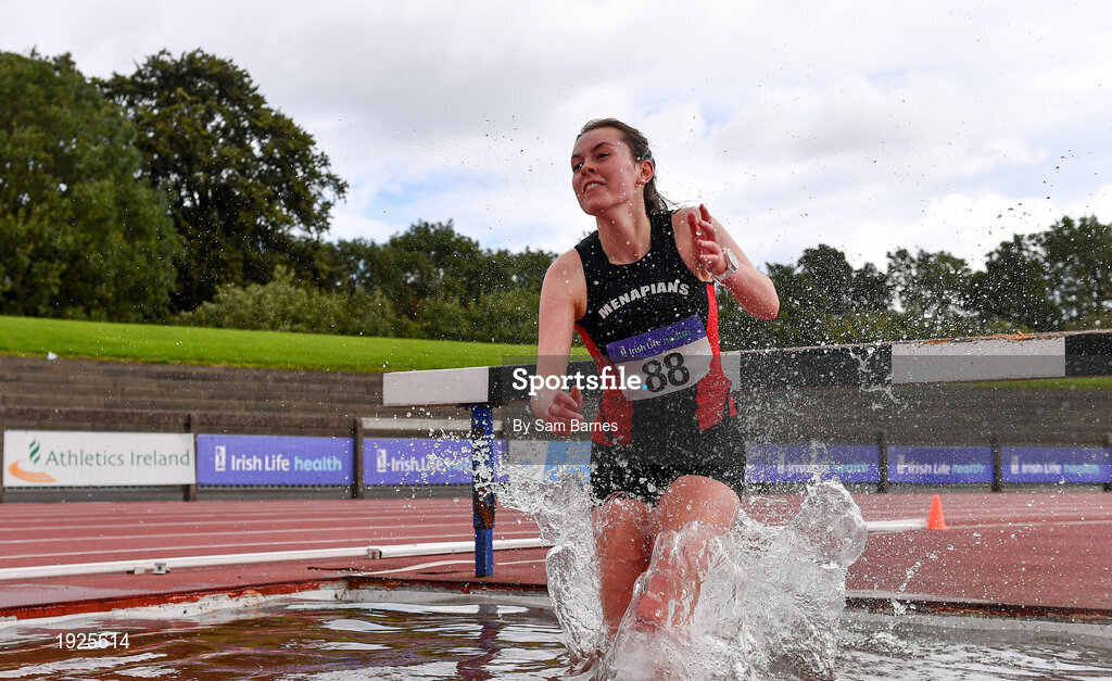 5 September 2020; Ciara Dolan of Menapians AC, Wexford, competing in the Junior Women's 3000m Steeplechase event during the Irish Life Health National Junior Track and Field Championships at Morton Stadium in Santry, Dublin. Photo by Sam Barnes/Sportsfile