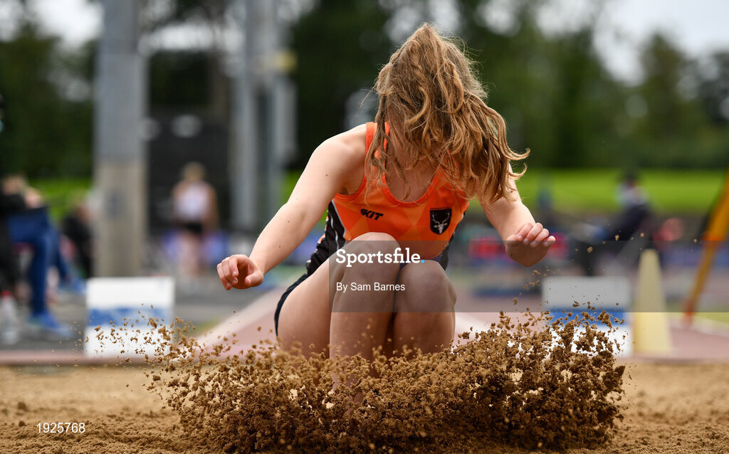 5 September 2020; Anna Mckinty of Orangegrove AC, Belfast, competing in the Junior Women's Long Jump event during the Irish Life Health National Junior Track and Field Championships at Morton Stadium in Santry, Dublin. Photo by Sam Barnes/Sportsfile