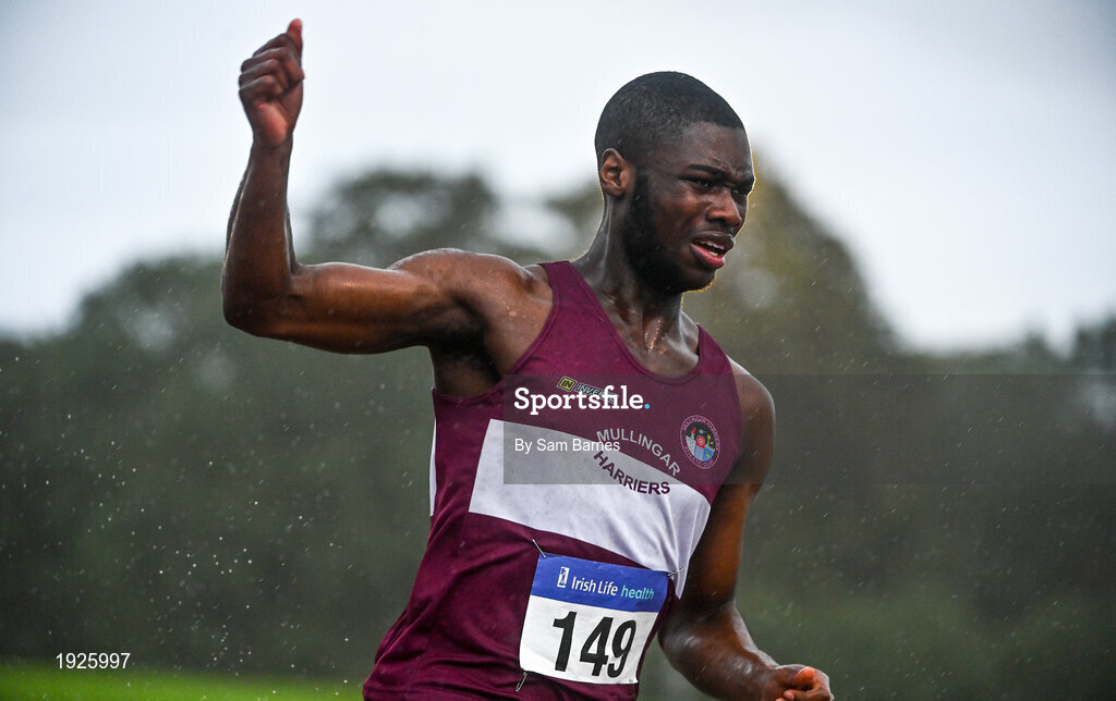 5 September 2020; Charles Okafor of Mullingar Harriers AC, Westmeath, celebrates winning the Junior Men's 200m event during the Irish Life Health National Junior Track and Field Championships at Morton Stadium in Santry, Dublin. Photo by Sam Barnes/Sportsfile