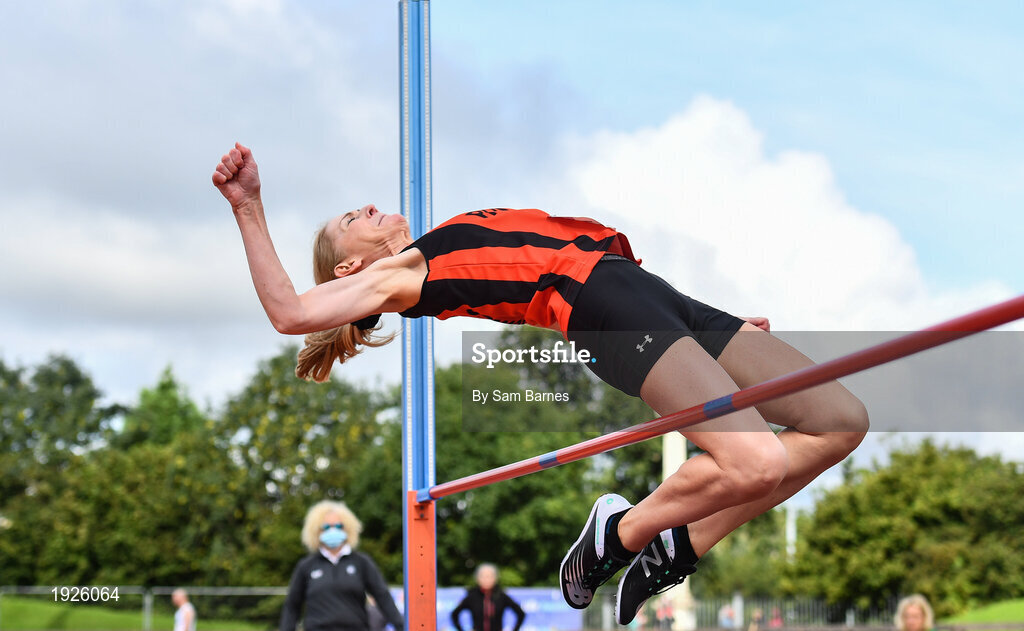 6 September 2020; Trisha Gillespie of Rosses AC, Donegal,, competing in the F45 Women's High Jump event during the Irish Life Health National Masters Track and Field Championships at Morton Stadium in Santry, Dublin. Photo by Sam Barnes/Sportsfile