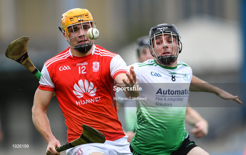 6 September 2020; Diarmuid O'Floinn of Cuala in action against Ronan Smith of Lucan Sarsfields during the Dublin County Senior Hurling Championship Semi-Final match between Lucan Sarsfields and Cuala at Parnell Park in Dublin. Photo by Piaras Ó Mídheach/Sportsfile