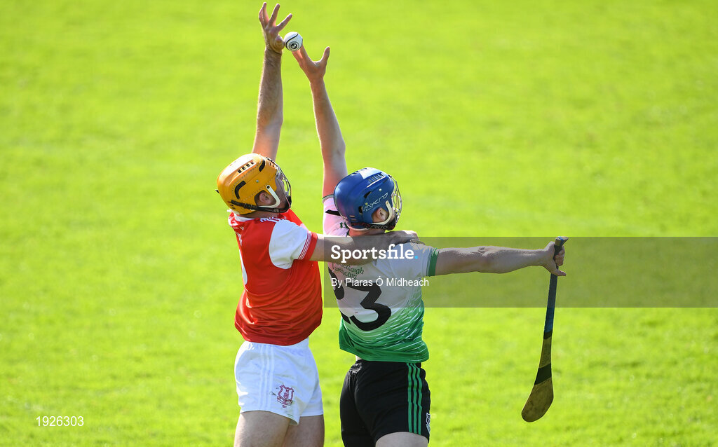 6 September 2020; Oisín Gough of Cuala in action against Emmett Ó Conghaile of Lucan Sarsfields during the Dublin County Senior Hurling Championship Semi-Final match between Lucan Sarsfields and Cuala at Parnell Park in Dublin. Photo by Piaras Ó Mídheach/Sportsfile