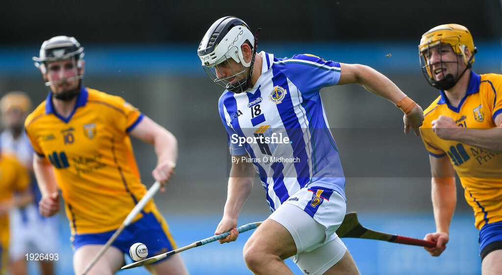6 September 2020; Seán McDonnell of Ballyboden St Enda's gets past Eoghan McHugh, left, and Seán Burke of Na Fianna during the Dublin County Senior Hurling Championship Semi-Final match between Ballyboden St Enda's and Na Fianna at Parnell Park in Dublin. Photo by Piaras Ó Mídheach/Sportsfile
