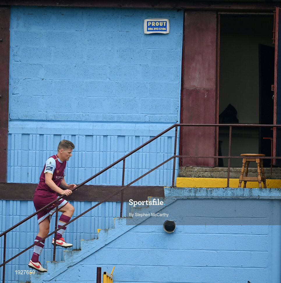29 August 2020; Derek Prendergast of Drogheda United retruns to the dressing room at half-time during the Extra.ie FAI Cup Second Round match between Drogheda United and Derry City at United Park in Drogheda, Louth. Photo by Stephen McCarthy/Sportsfile