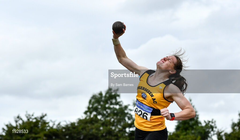 12 September 2020; Karen Dunne of Bohermeen AC, Meath, competing in the Shot Put event of the Senior Women's Heptathlon during day one of the Irish Life Health Combined Event Championships at Morton Stadium in Santry, Dublin. Photo by Sam Barnes/Sportsfile