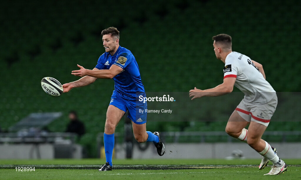 12 September 2020; Ross Byrne of Leinster during the Guinness PRO14 Final match between Leinster and Ulster at the Aviva Stadium in Dublin. Photo by Ramsey Cardy/Sportsfile