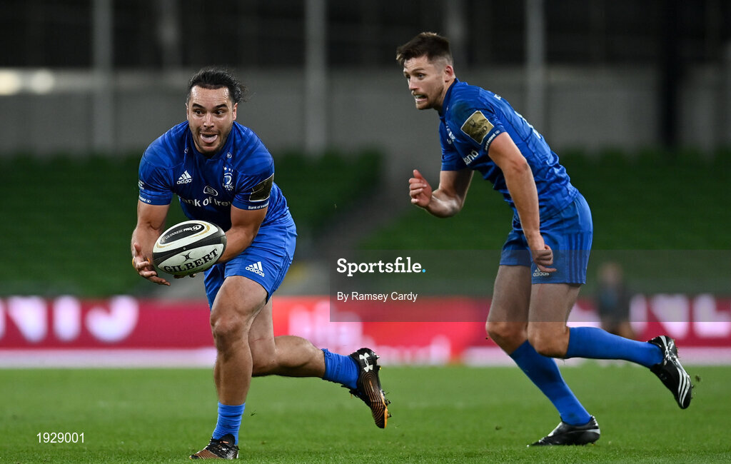 12 September 2020; James Lowe, left, and Ross Byrne of Leinster during the Guinness PRO14 Final match between Leinster and Ulster at the Aviva Stadium in Dublin. Photo by Ramsey Cardy/Sportsfile