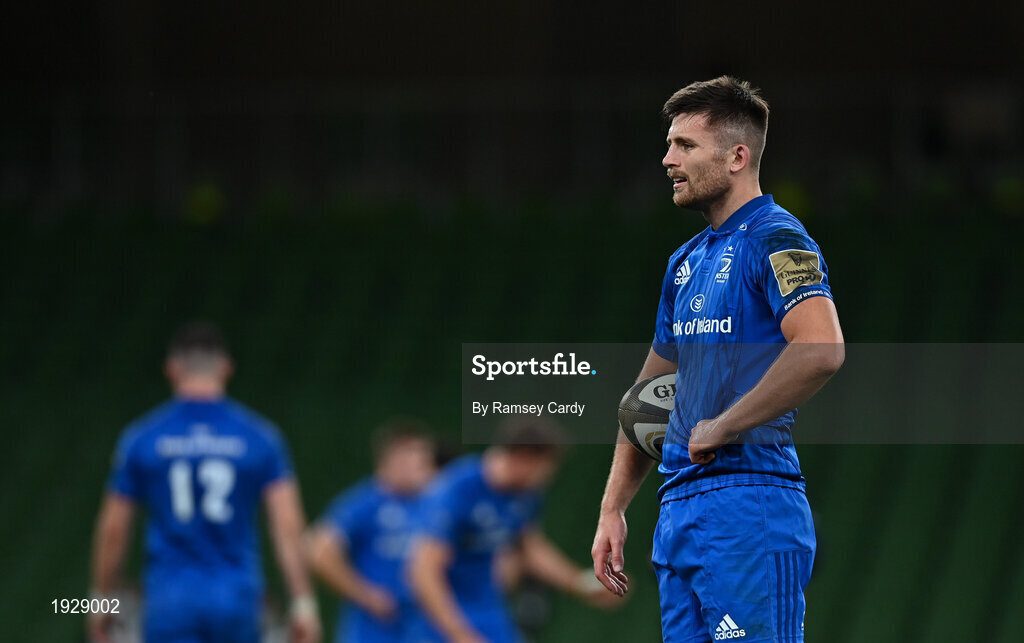 12 September 2020; Ross Byrne of Leinster during the Guinness PRO14 Final match between Leinster and Ulster at the Aviva Stadium in Dublin. Photo by Ramsey Cardy/Sportsfile