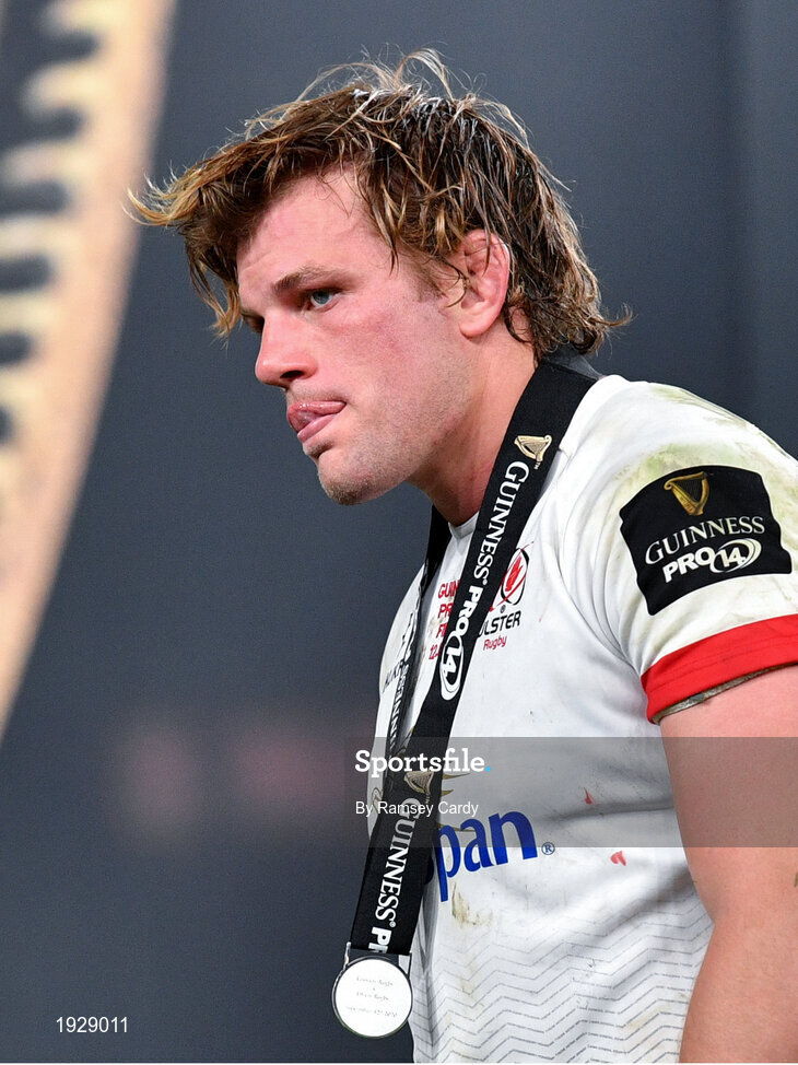 12 September 2020; Jordi Murphy of Ulster with their runners up medal following the Guinness PRO14 Final match between Leinster and Ulster at the Aviva Stadium in Dublin. Photo by Ramsey Cardy/Sportsfile