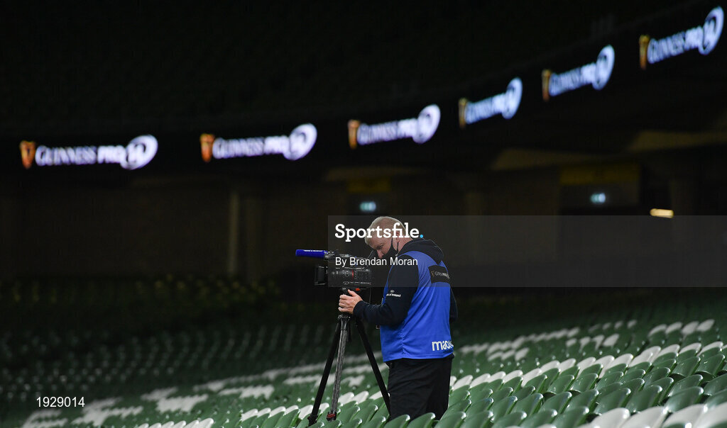 12 September 2020; Leinster TV videographer Gavin Owens during the Guinness PRO14 Final match between Leinster and Ulster at the Aviva Stadium in Dublin. Photo by Brendan Moran/Sportsfile
