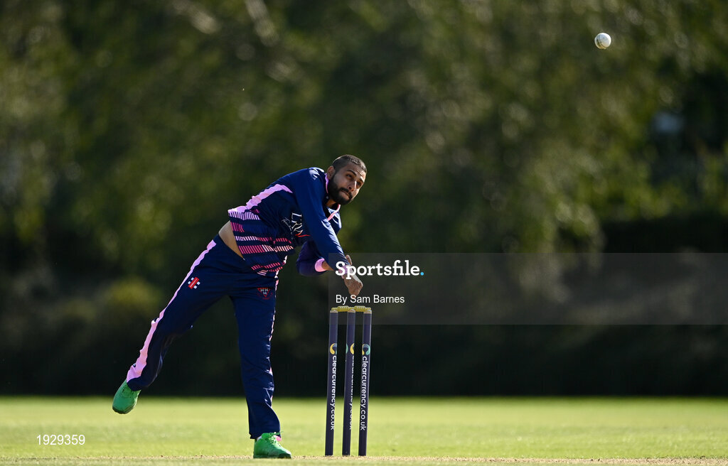 13 September 2020; Simi Singh of YMCA delivers during the All-Ireland T20 Semi-Final match between YMCA and Cork County at Pembroke Cricket Club in Dublin. Photo by Sam Barnes/Sportsfile