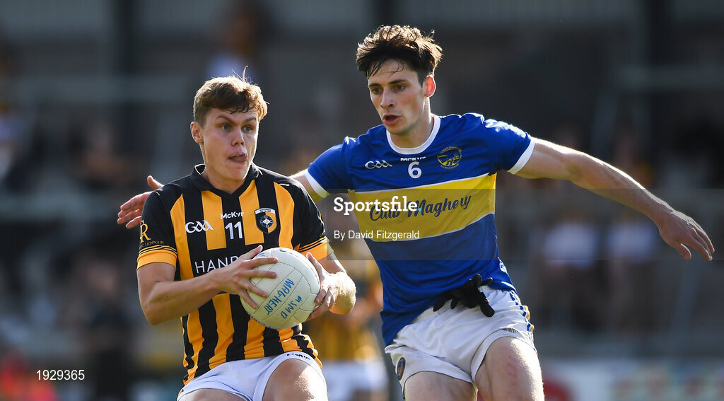 13 September 2020; Oisin O'Neill of Crossmaglen Rangers in action against Ciaran Higgins of Maghery Seán MacDiarmada during the Armagh County Senior Football Championship Final match between Crossmaglen Rangers and Maghery Seán MacDiarmada at the Athletic Grounds in Armagh. Photo by David Fitzgerald/Sportsfile