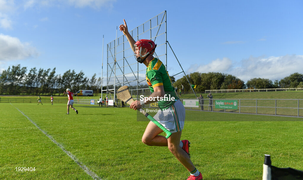 13 September 2020; Eoin O'Neill of Dunloy celebrates scoring a late point during the Antrim County Senior Hurling Championship Final match between Dunloy Cuchullains and Loughgiel Shamrocks at Páirc Mhic Uilín in Ballycastle, Antrim. Photo by Brendan Moran/Sportsfile