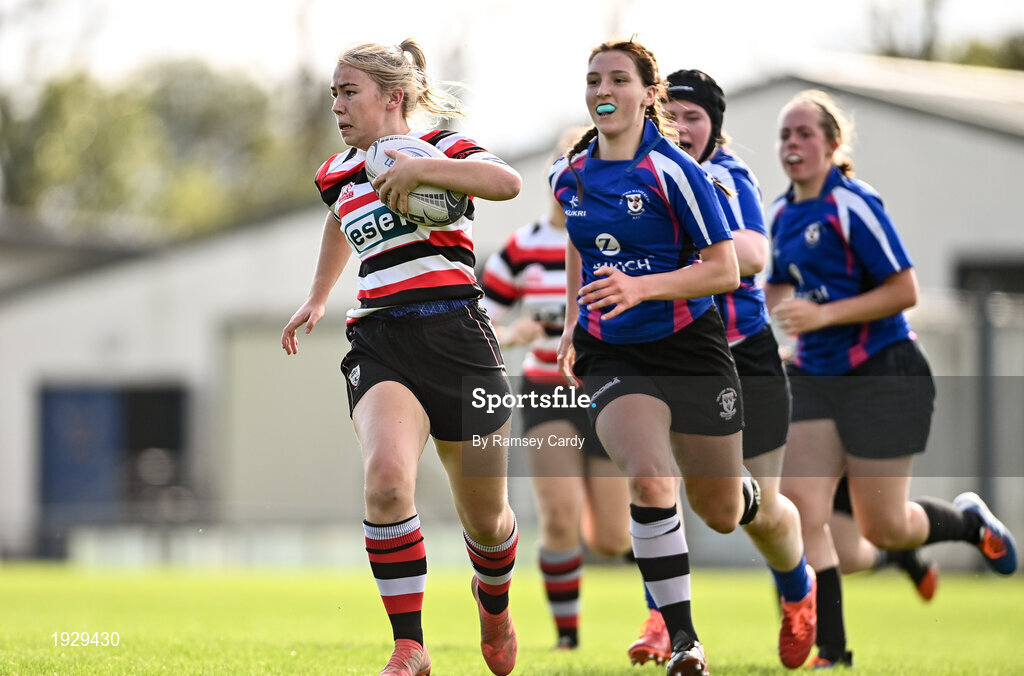 13 September 2020; Seana Kane of Enniscorthy on her way to scoring a try during the Southeast Women's Section Plate 2020/21 match between Enniscorthy and Wexford at Gorey RFC in Gorey, Wexford. Photo by Ramsey Cardy/Sportsfile