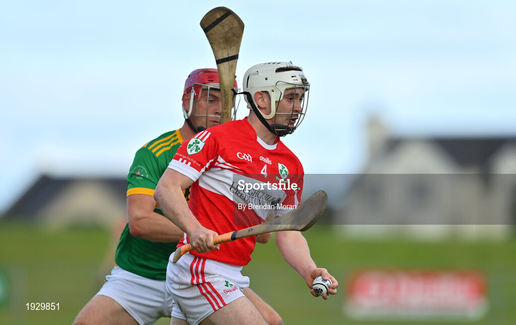 13 September 2020; Seamus Dobbin of Loughgiel in action against Eoin O'Neill of Dunloy during the Antrim County Senior Hurling Championship Final match between Dunloy Cuchullains and Loughgiel Shamrocks at Páirc Mhic Uilín in Ballycastle, Antrim. Photo by Brendan Moran/Sportsfile