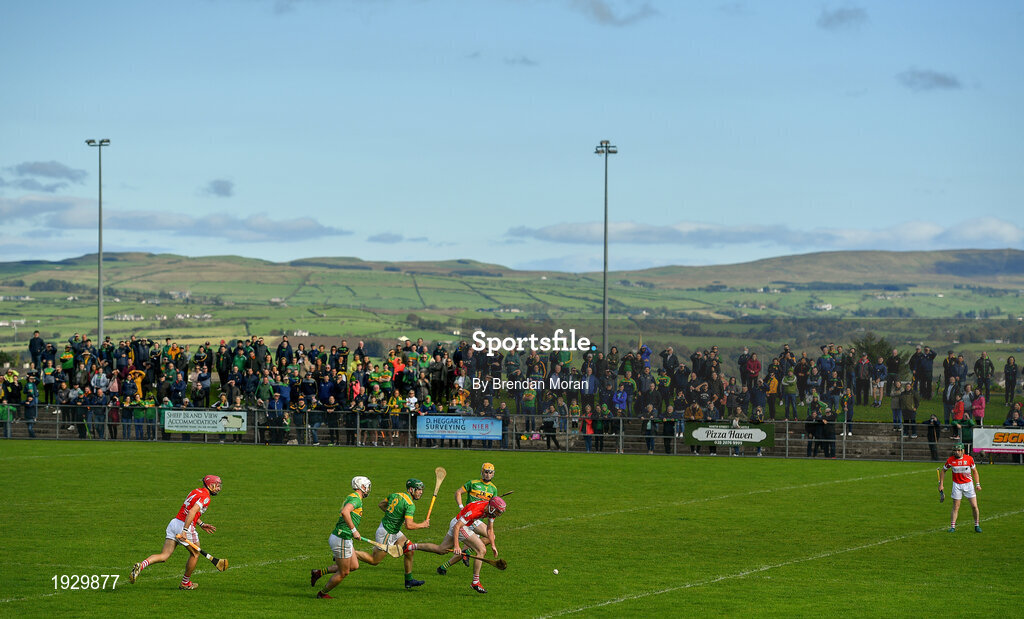 13 September 2020; A general view of the action during the Antrim County Senior Hurling Championship Final match between Dunloy Cuchullains and Loughgiel Shamrocks at Páirc Mhic Uilín in Ballycastle, Antrim. Photo by Brendan Moran/Sportsfile