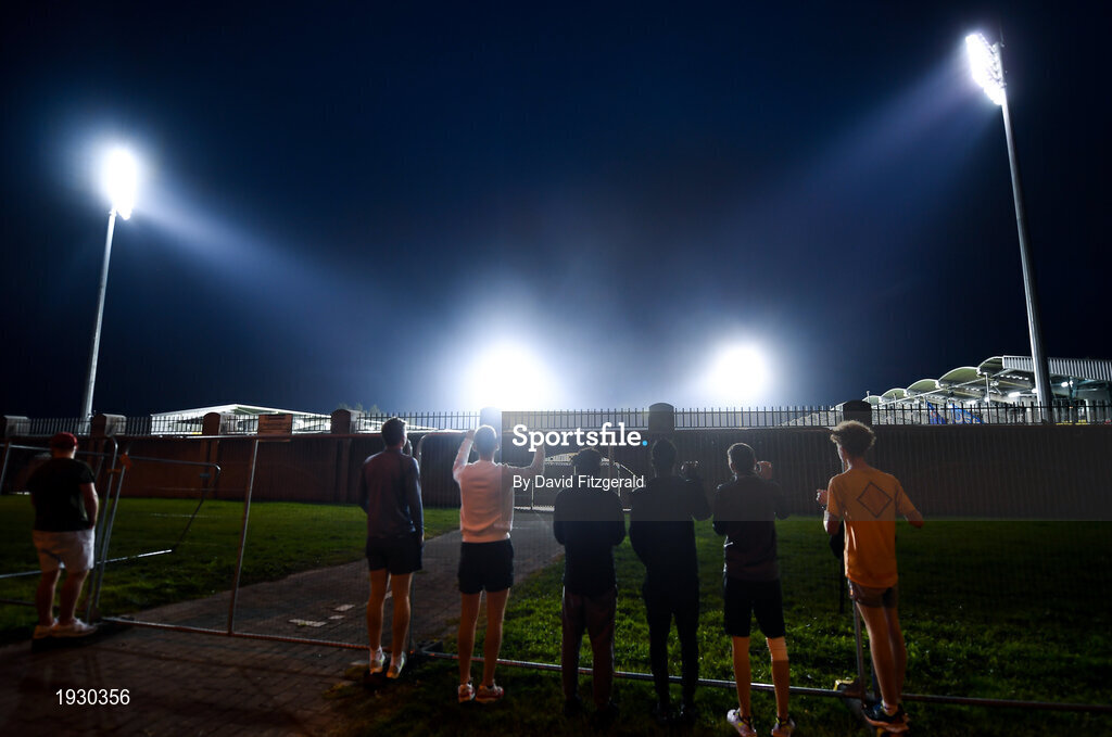 17 September 2020; Supporters try to sneak a peak of the game outside the ground during the UEFA Europa League Second Qualifying Round match between Shamrock Rovers and AC Milan at Tallaght Stadium in Dublin. Photo by David Fitzgerald/Sportsfile