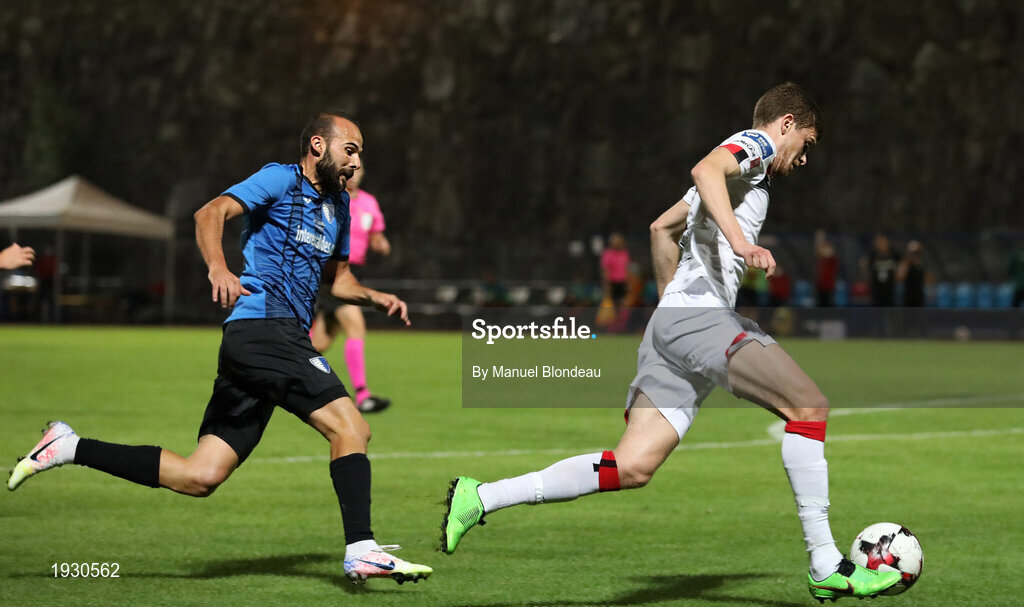 17 September 2020; Sean Gannon of Dundalk in action against Roca Grau of Inter Escaldes during the UEFA Europa League Second Qualifying Round match between Inter Escaldes and Dundalk at Estadi Comunal d'Andorra la Vella in Andorra. Photo by Manuel Blondeau/Sportsfile