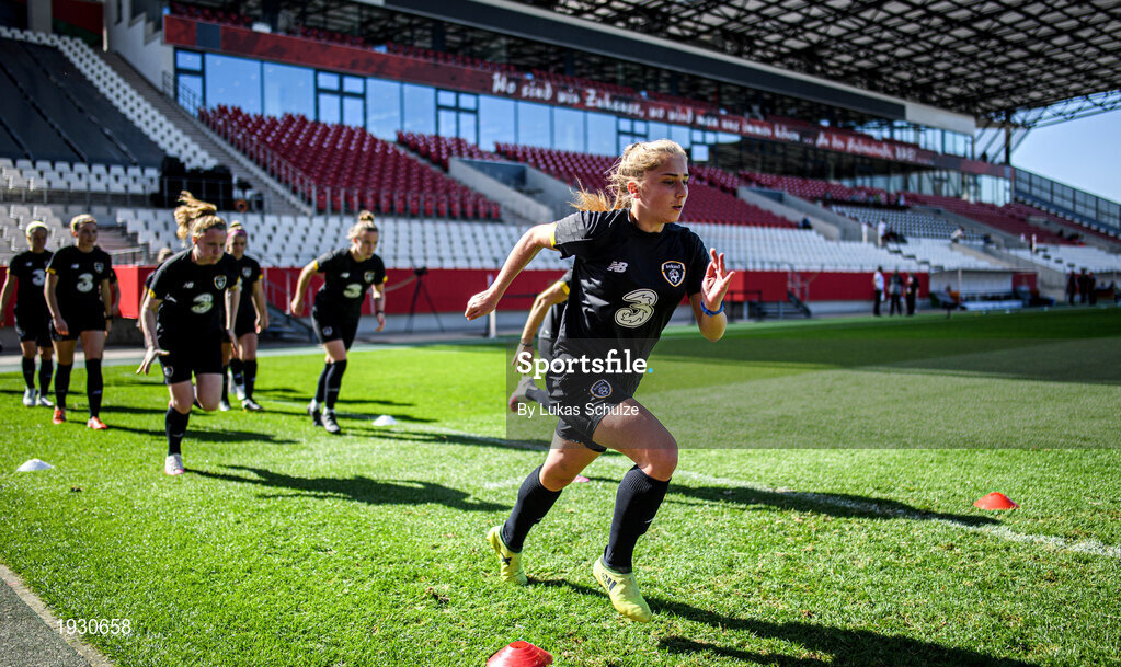 18 September 2020; Ellen Molloy warms up during a Republic of Ireland women's training session at Stadion Essen in Essen, Germany. Photo by Lukas Schulze/Sportsfile