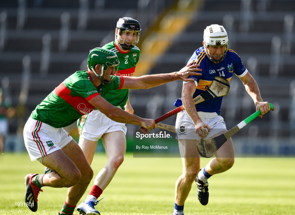 20 September 2020; Paul Flynn of Kiladangan is tackled by John Ryan, left, and Lorcan Egan of Loughmore-Castleiney during the Tipperary County Senior Hurling Championship Final match between Kiladangan and Loughmore-Castleiney at Semple Stadium in Thurles, Tipperary. Photo by Ray McManus/Sportsfile