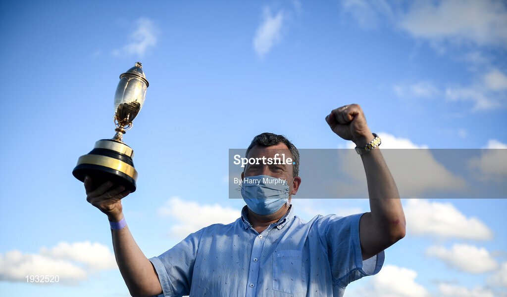 23 September 2020; Owner Jonathan O'Grady celebrates with the trophy after sending out Cabaret Queen to win the Guinness Kerry National Handicap Steeplechase at Listowel in Kerry. Photo by Harry Murphy/Sportsfile