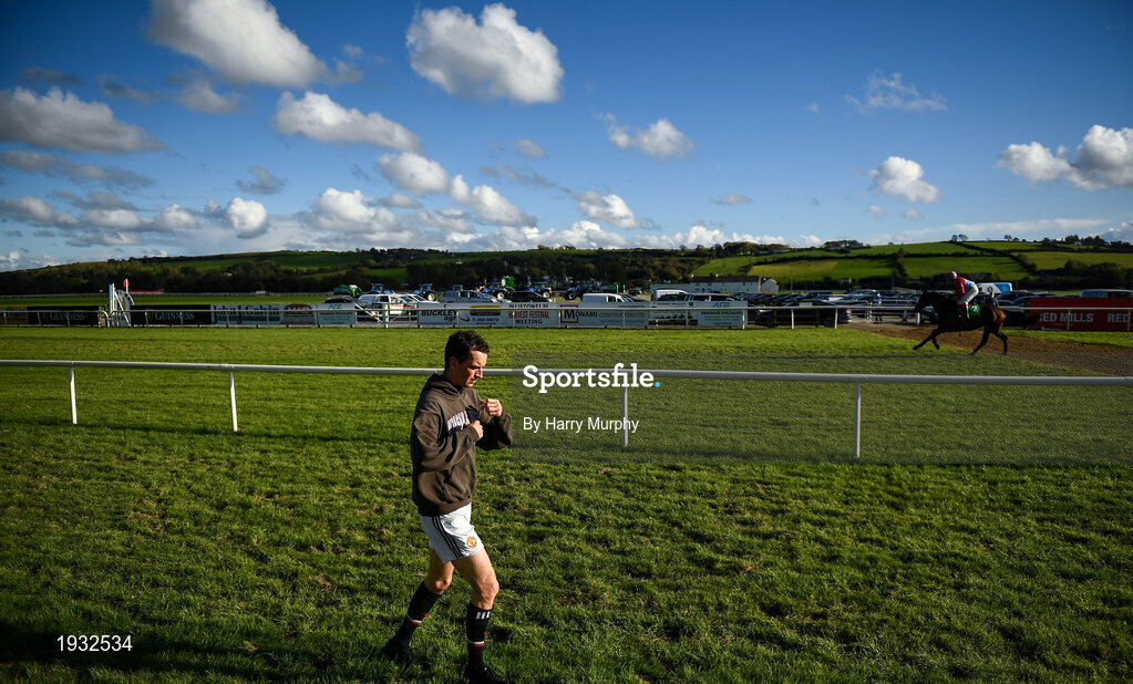 23 September 2020; Jockey Paddy Mullins jogs the course as runners and riders go to post prior to the Brandon Hotel Beginners Steeplechase at Listowel in Kerry. Photo by Harry Murphy/Sportsfile