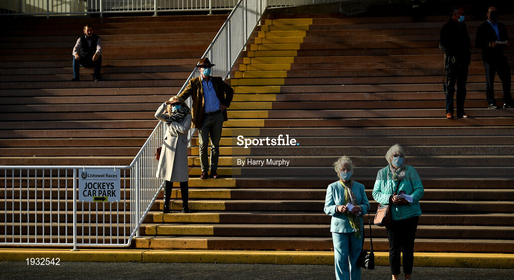 23 September 2020; Alice Power, left, with, Mary O’Hanlon, owners of Run For Oscar look on during the Brandon Hotel Beginners Steeplechase at Listowel in Kerry. Photo by Harry Murphy/Sportsfile