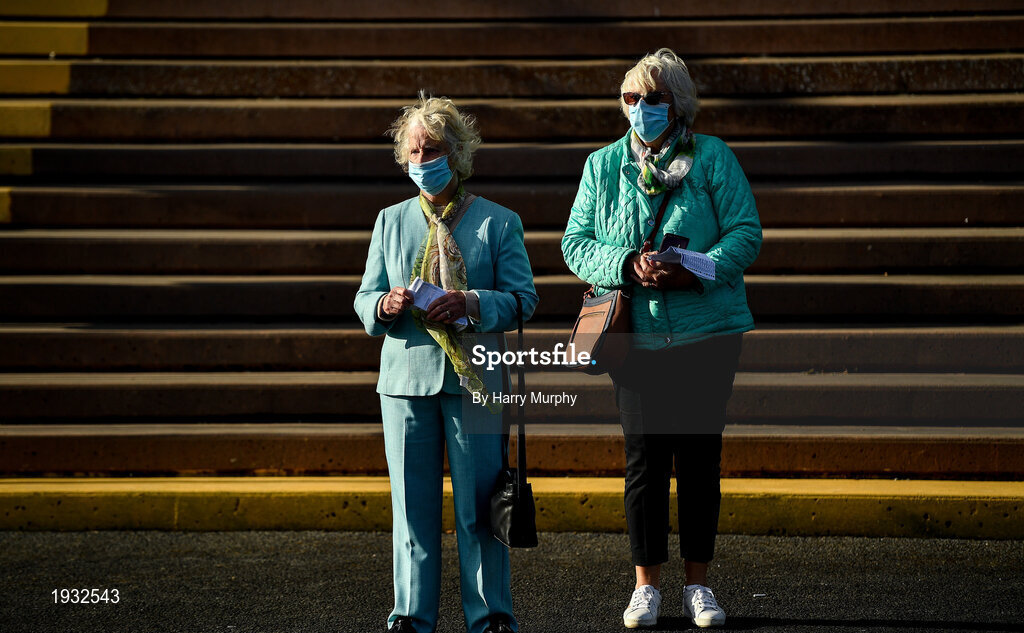 23 September 2020; Alice Power, left, with, Mary O’Hanlon, owners of Run For Oscar look on during the Brandon Hotel Beginners Steeplechase at Listowel in Kerry. Photo by Harry Murphy/Sportsfile