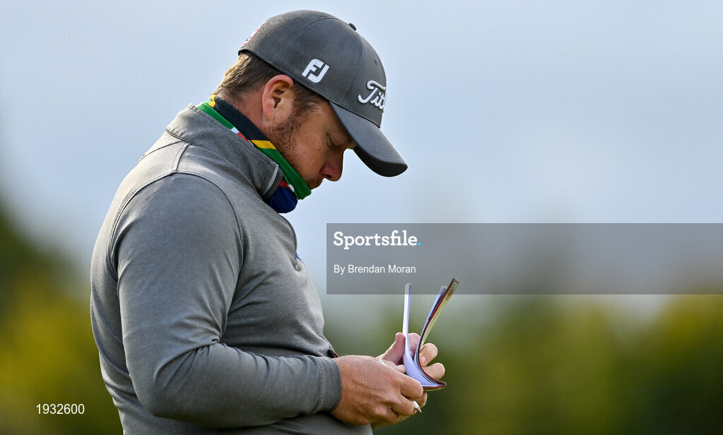 24 September 2020; George Coetzee of South Africa marks his card on the sixth green during day one of the Dubai Duty Free Irish Open Golf Championship at Galgorm Spa & Golf Resort in Ballymena, Antrim. Photo by Brendan Moran/Sportsfile