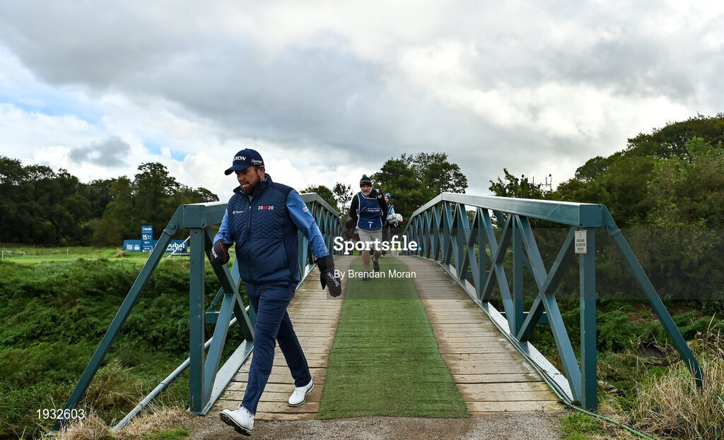 24 September 2020; Shane Lowry of Ireland crosses the bridge at the fifth tee box during his round at day one of the Dubai Duty Free Irish Open Golf Championship at Galgorm Spa & Golf Resort in Ballymena, Antrim. Photo by Brendan Moran/Sportsfile