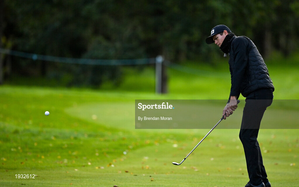 24 September 2020; Wilco Nienaber of South Africa chips onto the ninth green during day one of the Dubai Duty Free Irish Open Golf Championship at Galgorm Spa & Golf Resort in Ballymena, Antrim. Photo by Brendan Moran/Sportsfile