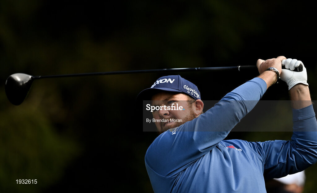 24 September 2020; Shane Lowry of Ireland watches his drive from the tenth tee box during day one of the Dubai Duty Free Irish Open Golf Championship at Galgorm Spa & Golf Resort in Ballymena, Antrim. Photo by Brendan Moran/Sportsfile