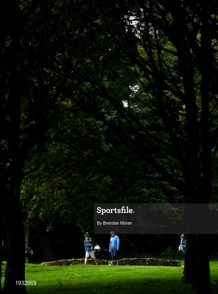 24 September 2020; Shane Lowry of Ireland and his caddie Brian Martin make their way down the 11th fairway during day one of the Dubai Duty Free Irish Open Golf Championship at Galgorm Spa & Golf Resort in Ballymena, Antrim. Photo by Brendan Moran/Sportsfile