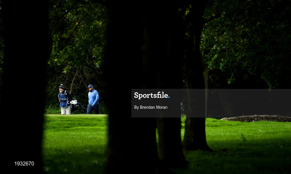 24 September 2020; Shane Lowry of Ireland and his caddie Brian Martin make their way down the 11th fairway during day one of the Dubai Duty Free Irish Open Golf Championship at Galgorm Spa & Golf Resort in Ballymena, Antrim. Photo by Brendan Moran/Sportsfile