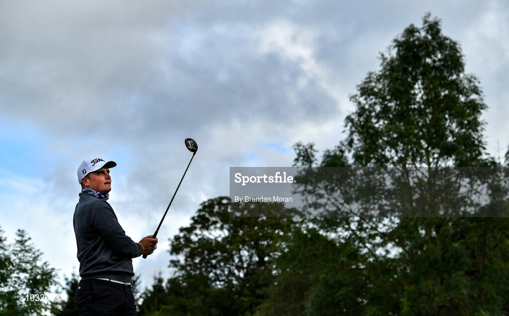 24 September 2020; James Sugrue of Ireland watches his drive on the 10th tee box during day one of the Dubai Duty Free Irish Open Golf Championship at Galgorm Spa & Golf Resort in Ballymena, Antrim. Photo by Brendan Moran/Sportsfile