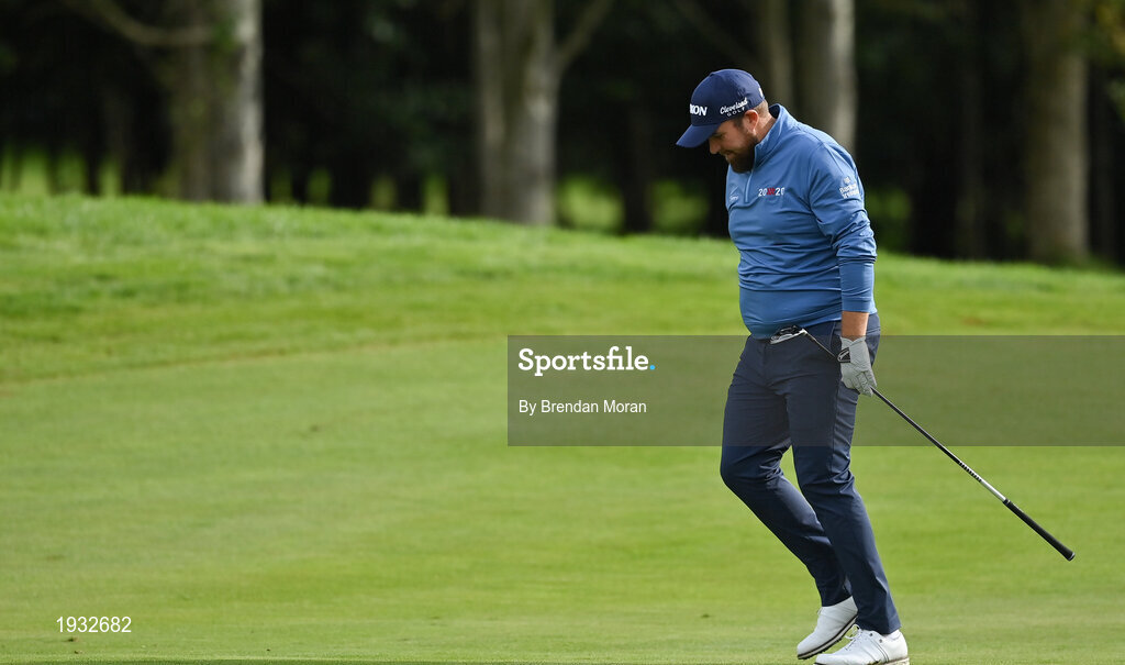 24 September 2020; Shane Lowry of Ireland reacts after his second shot on the 18th fairway during day one of the Dubai Duty Free Irish Open Golf Championship at Galgorm Spa & Golf Resort in Ballymena, Antrim. Photo by Brendan Moran/Sportsfile
