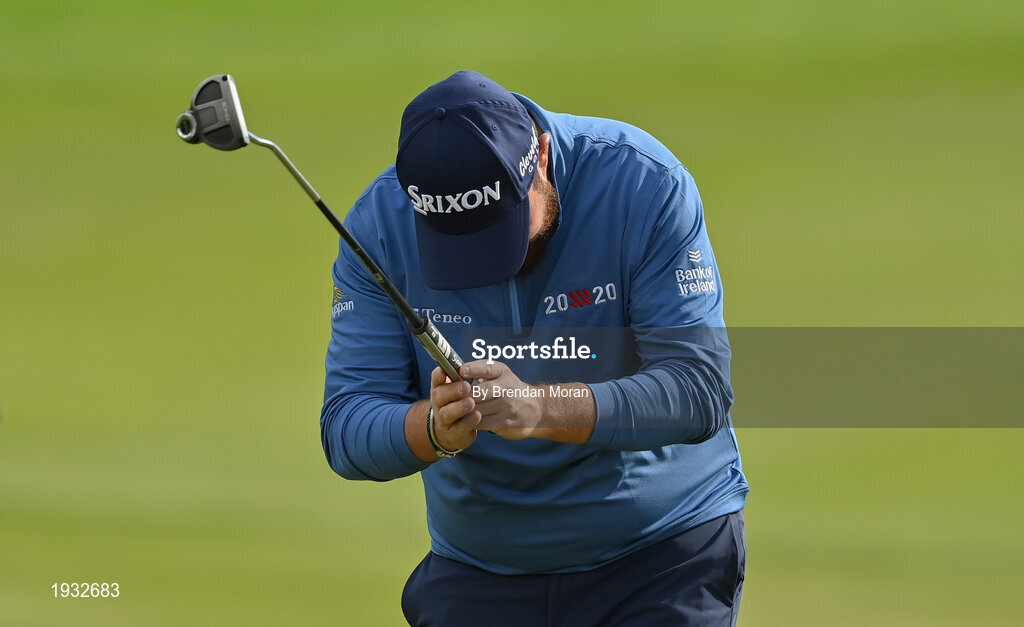 24 September 2020; Shane Lowry of Ireland reacts after sinking his final putt on the 18th green during day one of the Dubai Duty Free Irish Open Golf Championship at Galgorm Spa & Golf Resort in Ballymena, Antrim. Photo by Brendan Moran/Sportsfile
