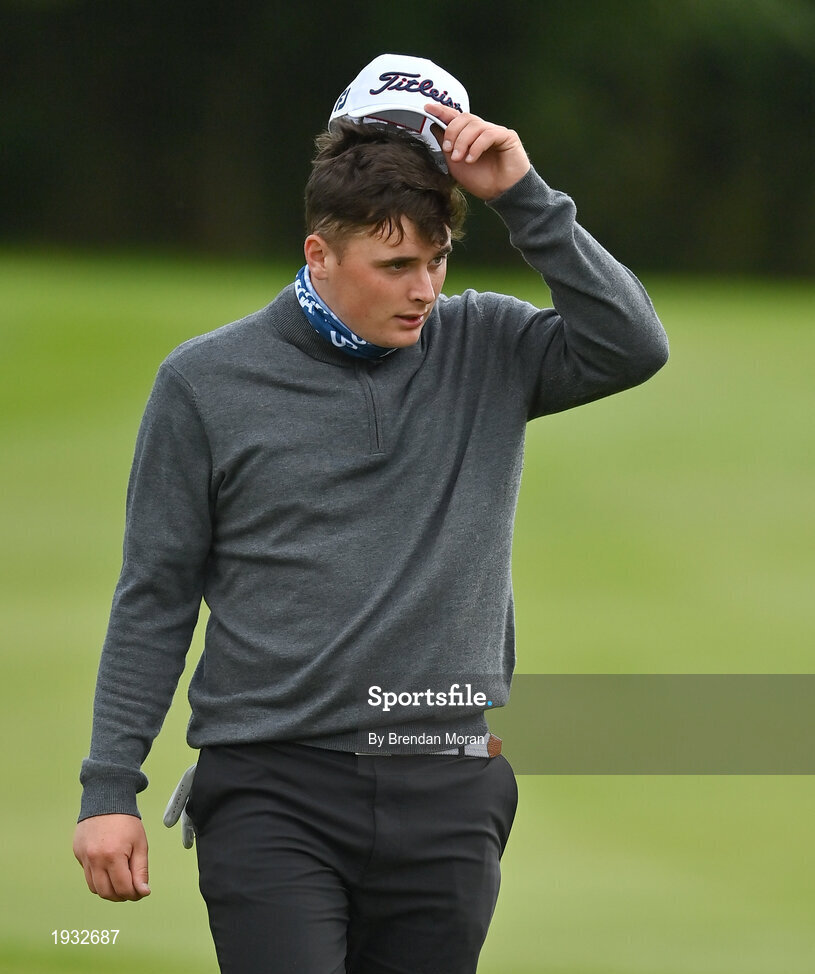 24 September 2020; James Sugrue of Ireland reacts after finishing on the 18th green during day one of the Dubai Duty Free Irish Open Golf Championship at Galgorm Spa & Golf Resort in Ballymena, Antrim. Photo by Brendan Moran/Sportsfile