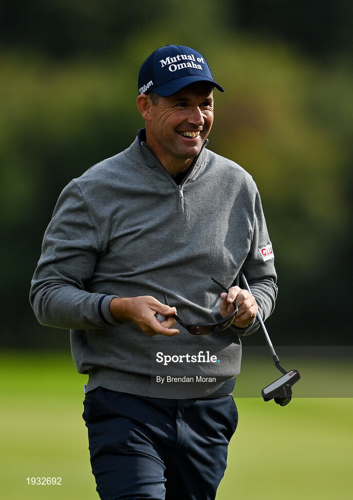 24 September 2020; Padraig Harrington of Ireland after finishing on the ninth green during day one of the Dubai Duty Free Irish Open Golf Championship at Galgorm Spa & Golf Resort in Ballymena, Antrim. Photo by Brendan Moran/Sportsfile