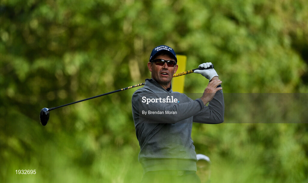 24 September 2020; Padraig Harrington of Ireland watches his drive on the 10th tee box during day one of the Dubai Duty Free Irish Open Golf Championship at Galgorm Spa & Golf Resort in Ballymena, Antrim. Photo by Brendan Moran/Sportsfile